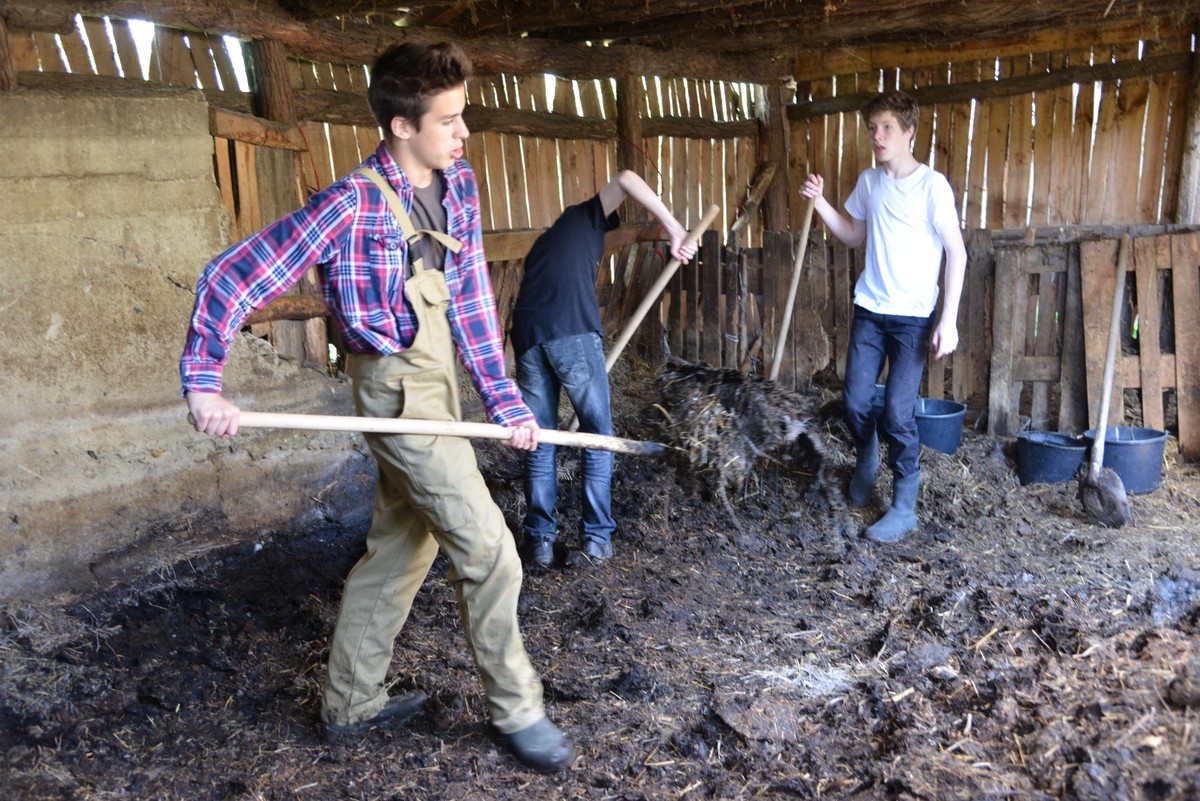 Másnap az osztály négy csoportra lett osztva, így minden állomáson dolgozott egy csapat. Az én csoportom kapta meg első napra a „mélyalmozást” (trágyapakolás), így már az első nap bűzlöttünk! A konyhás munkát szerette mindenki a legjobban, mivel itt sok szabadidőnk volt. Dolgoztunk még virágágyásban és zöldségeskertben, amelyek során mindenki szépen lebarnult. Móni elégedett volt velünk, szerinte fantasztikus a munkamorálunk, meg az energiánk. Ez nagyon jólesett azok után, hogy két tonna (egy évi) juhtrágyát lapátoltunk ki az istállóból.