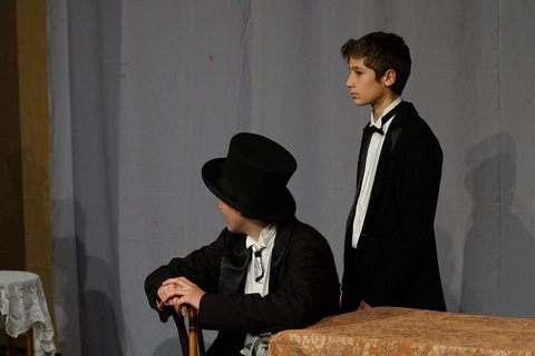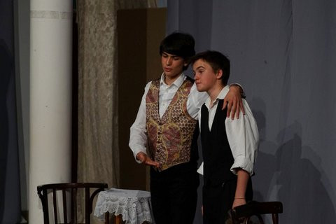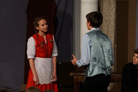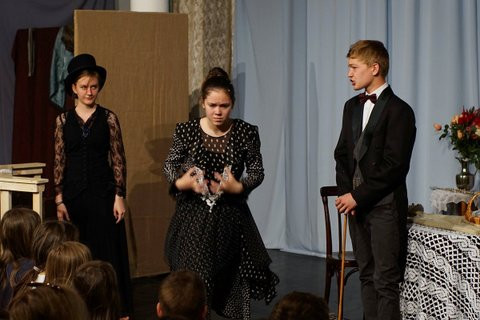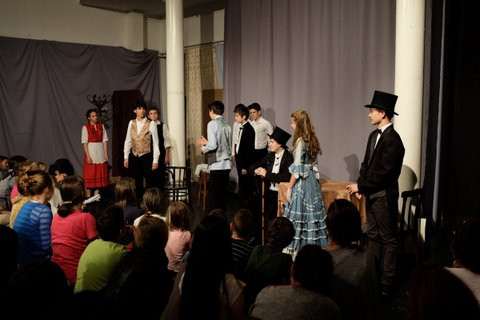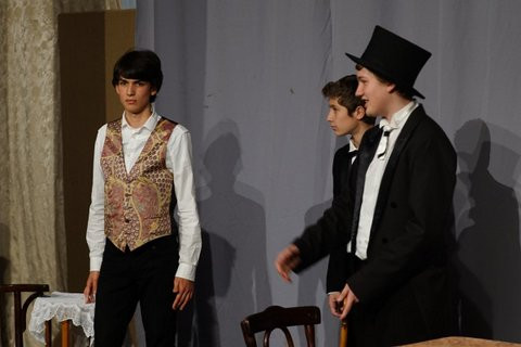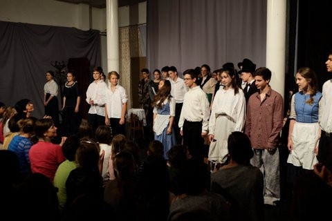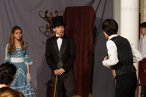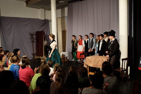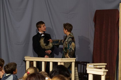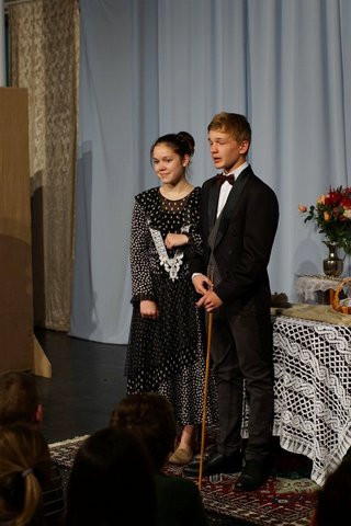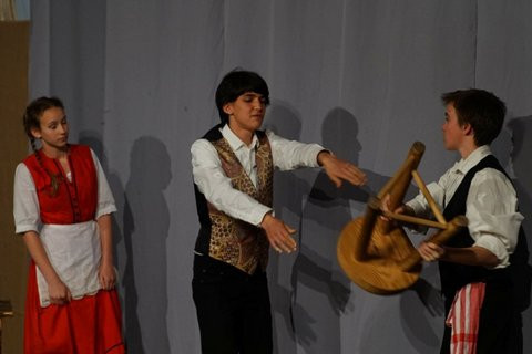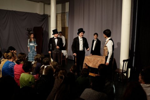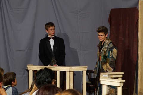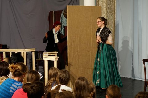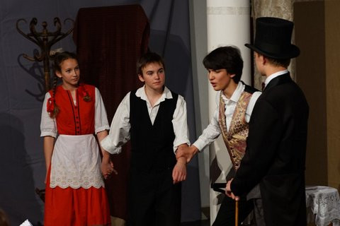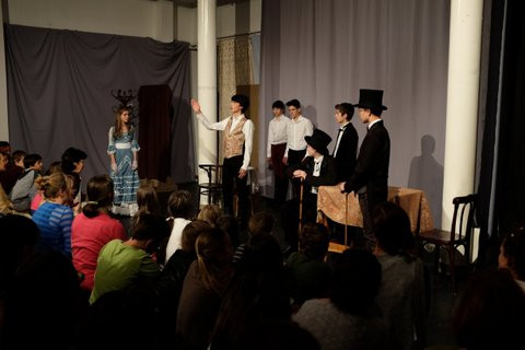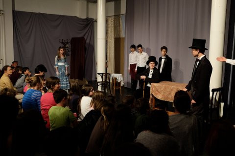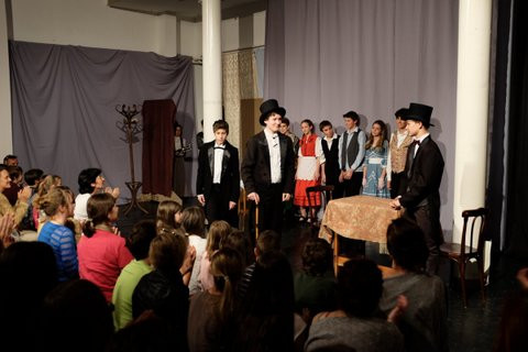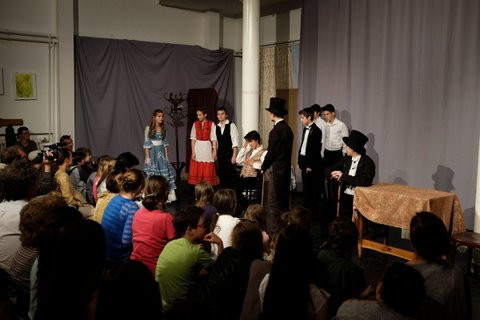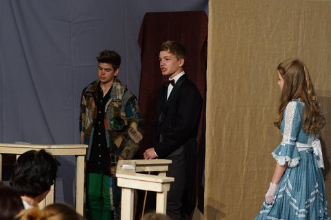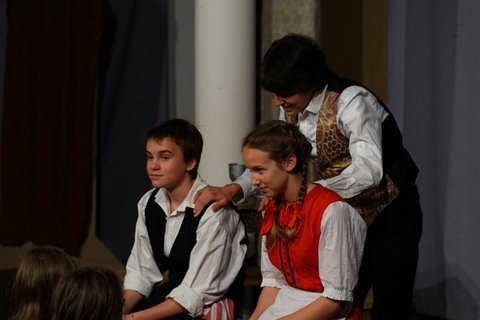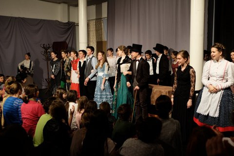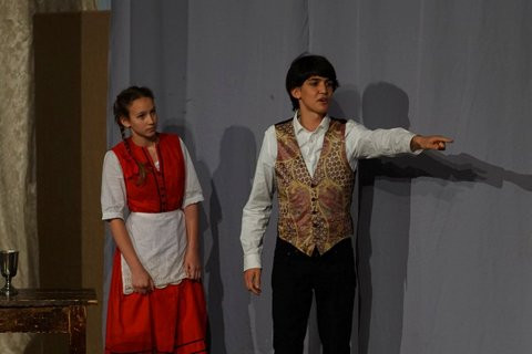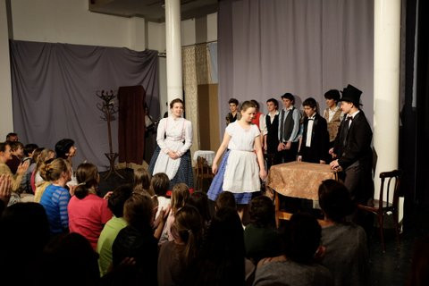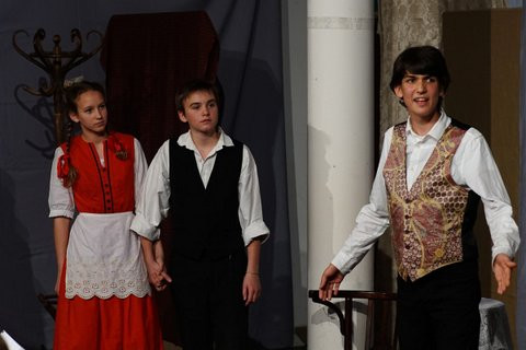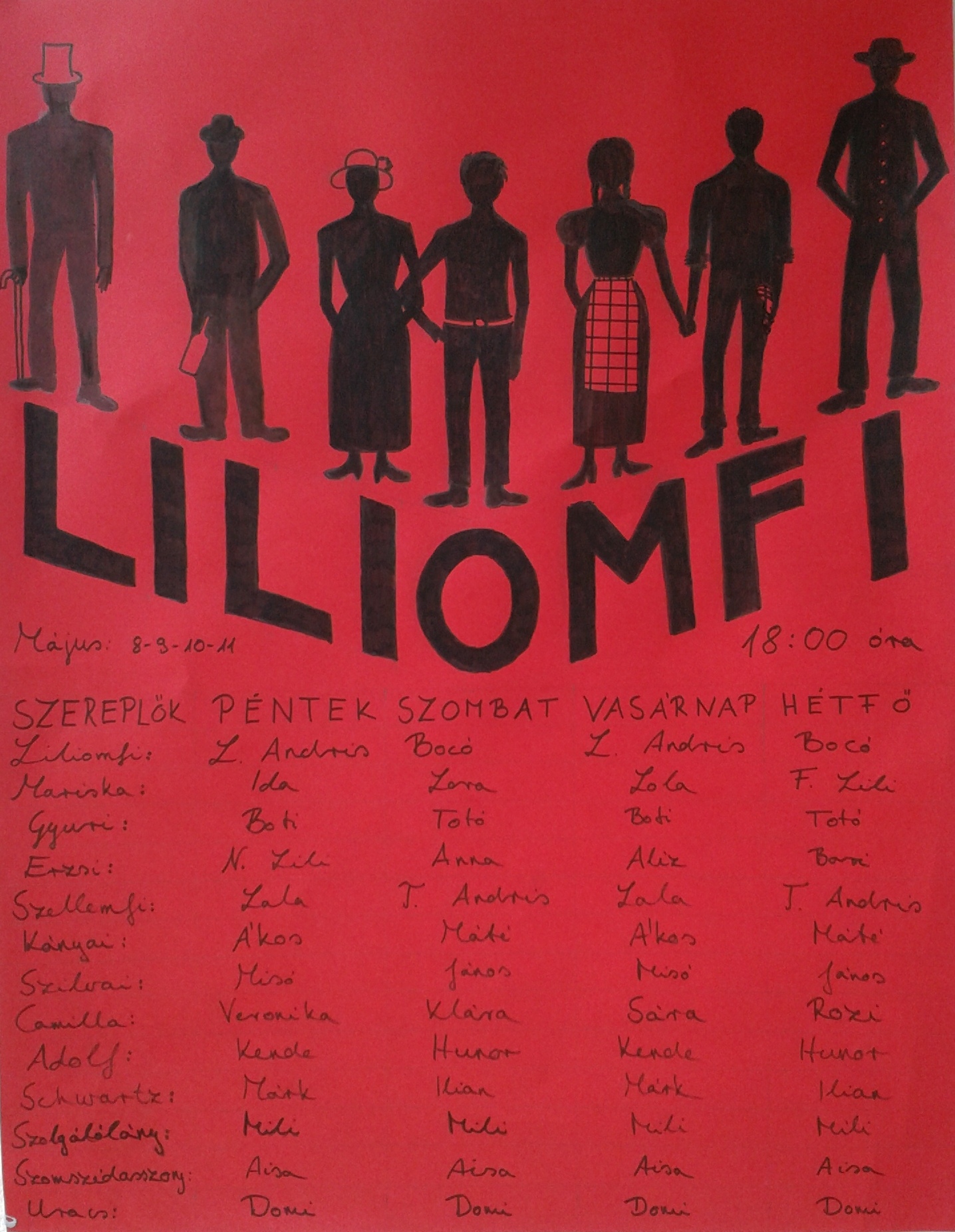 Képek a nyolcadik osztály Szigligeti Ede: Liliomfi című vígjátékának az előadásáról.