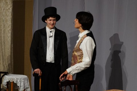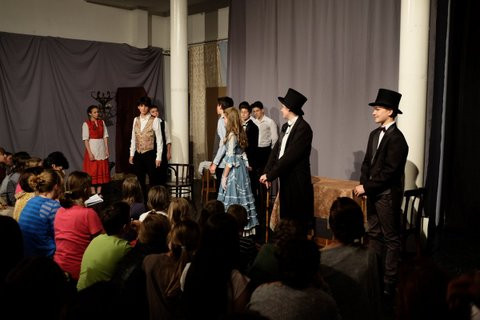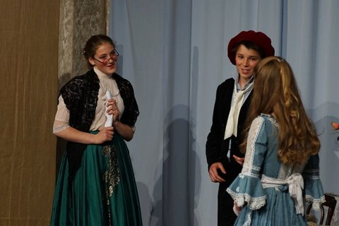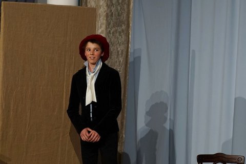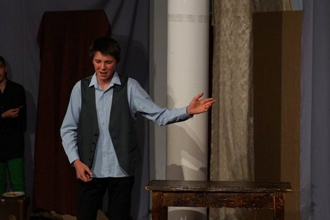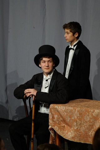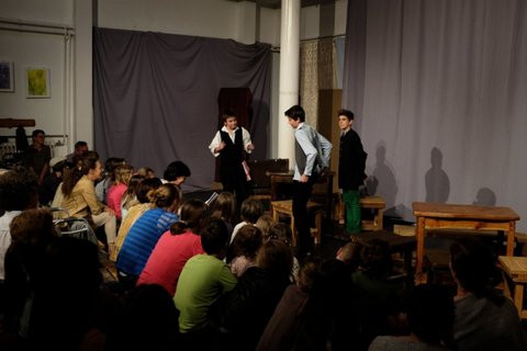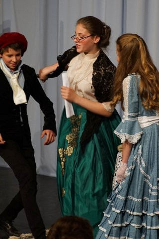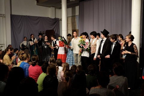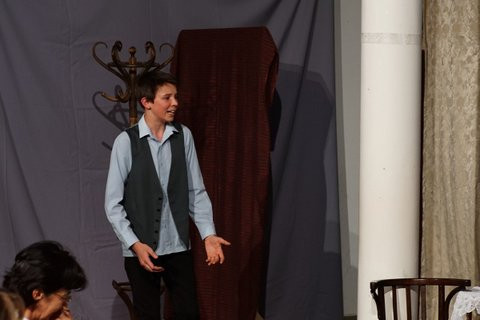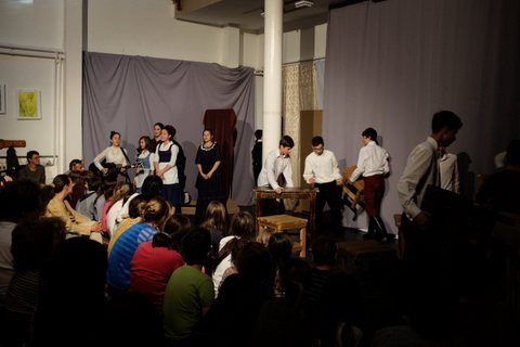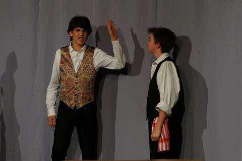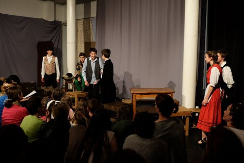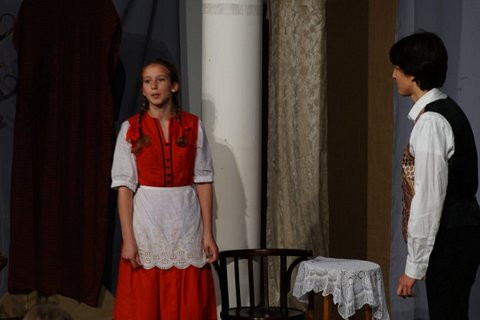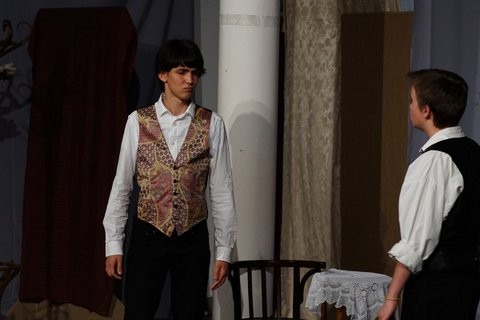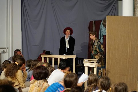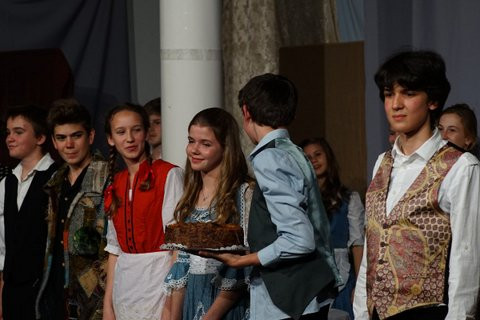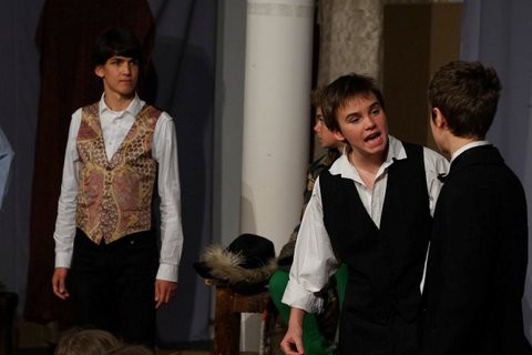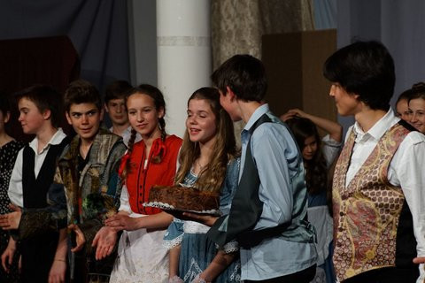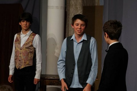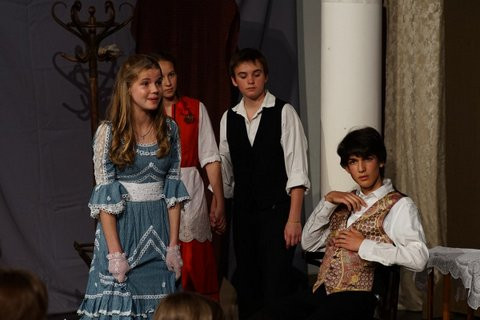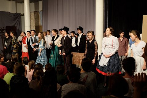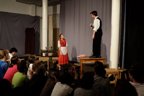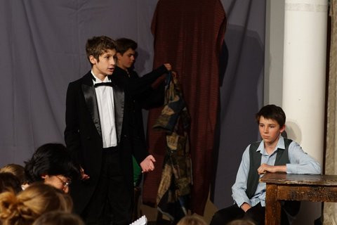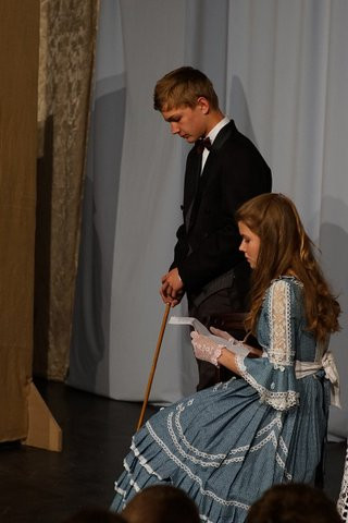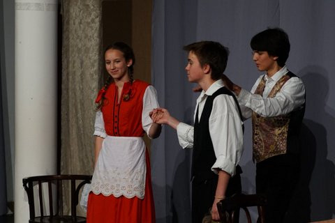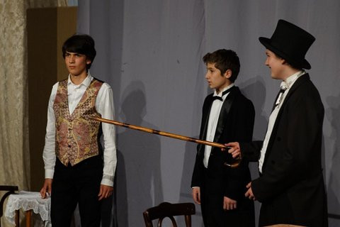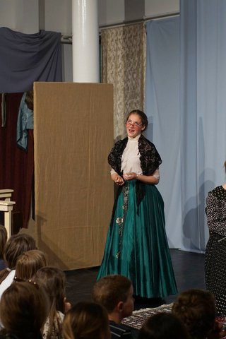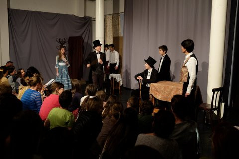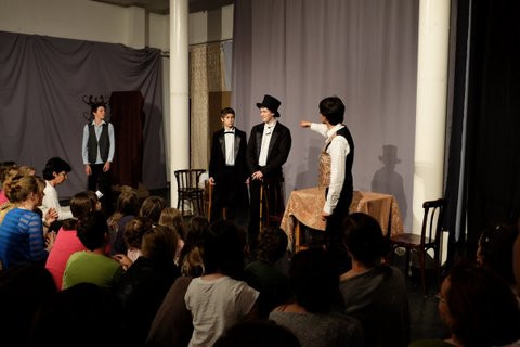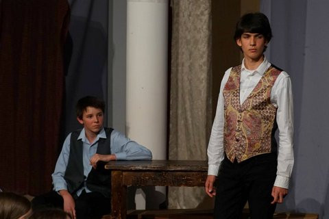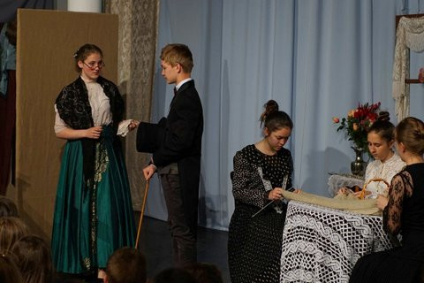 Képek a nyolcadik osztály Szigligeti Ede: Liliomfi című vígjátékának az előadásáról.
