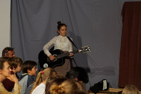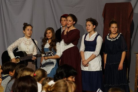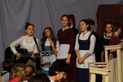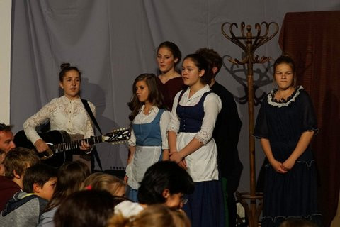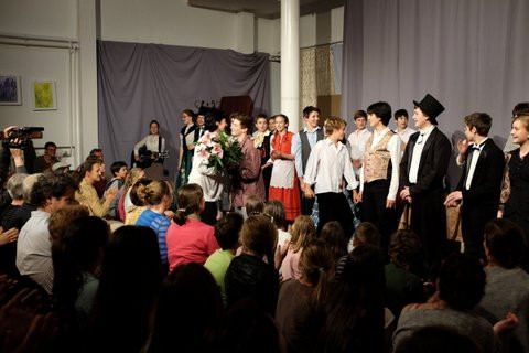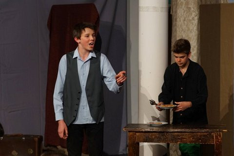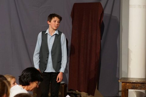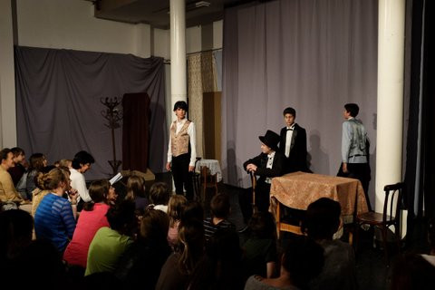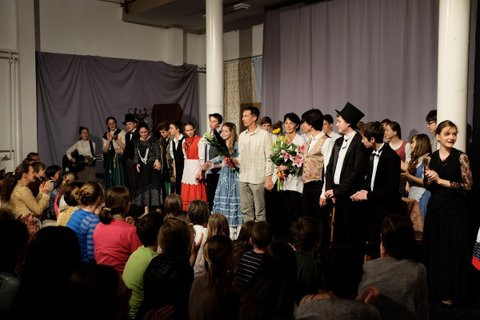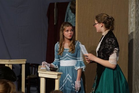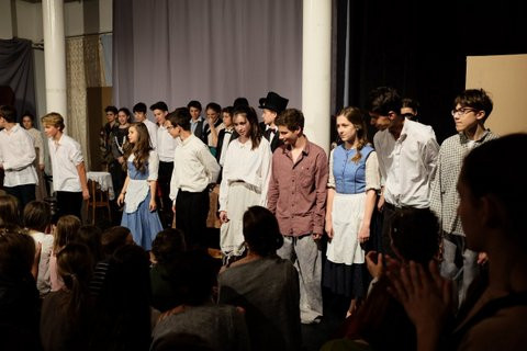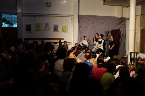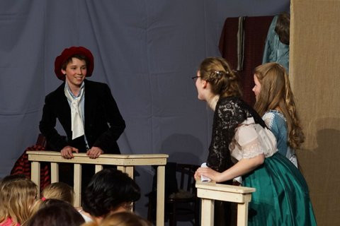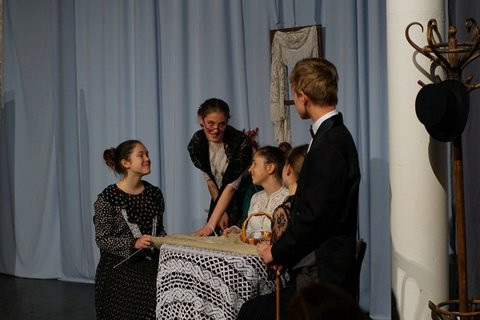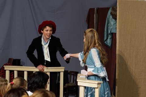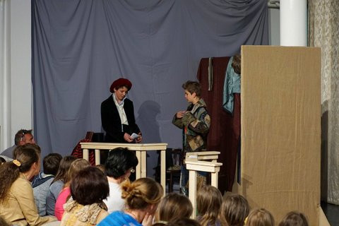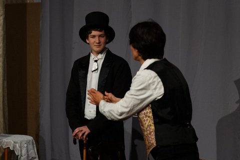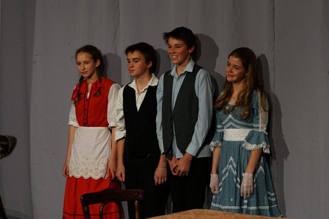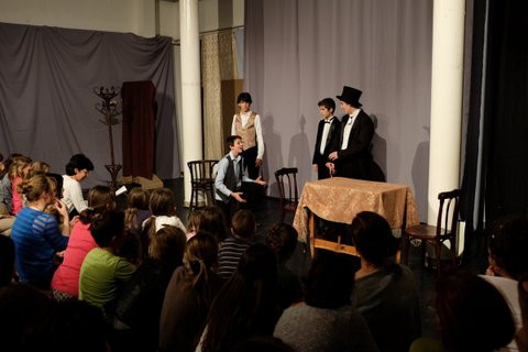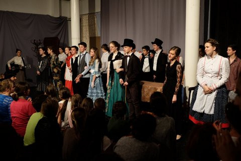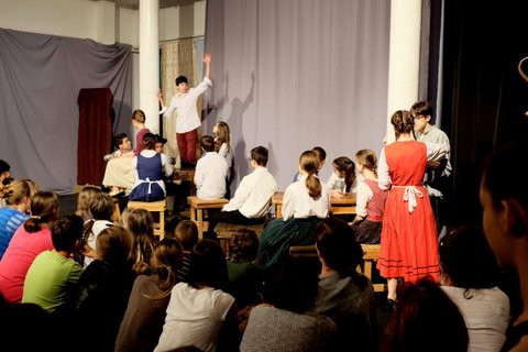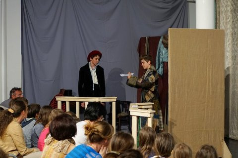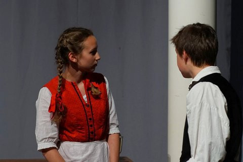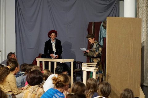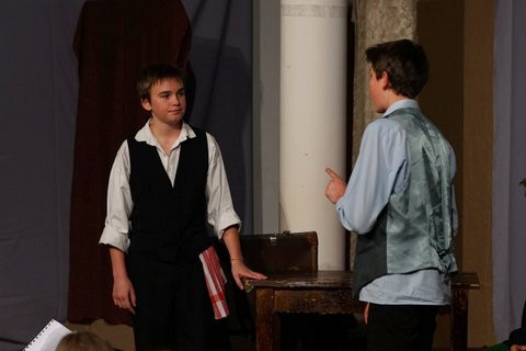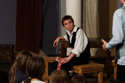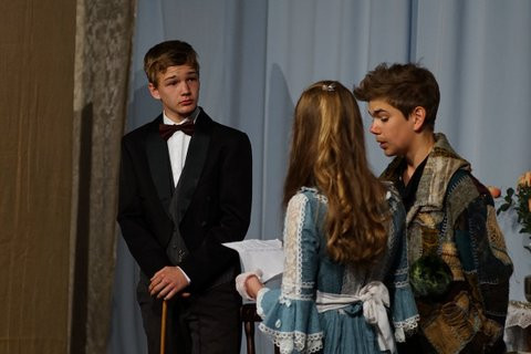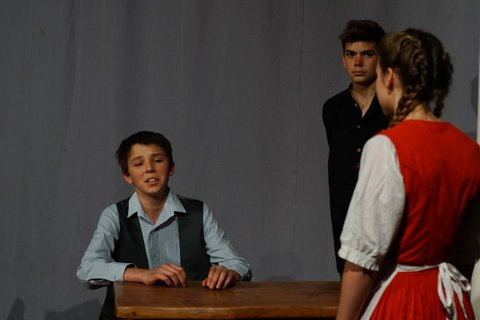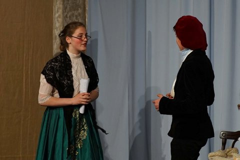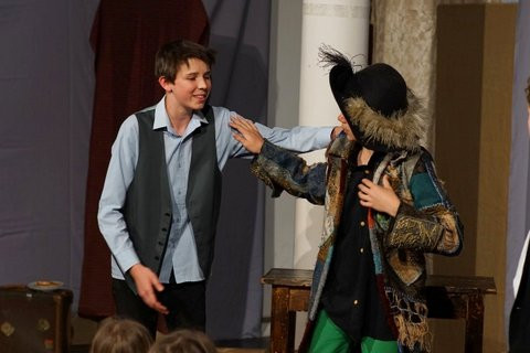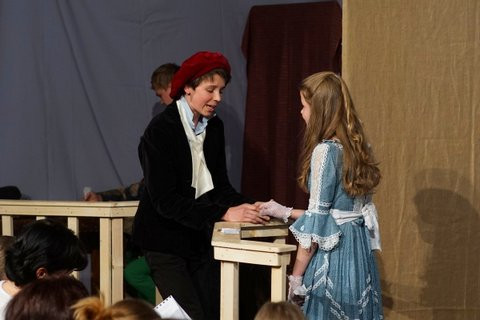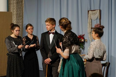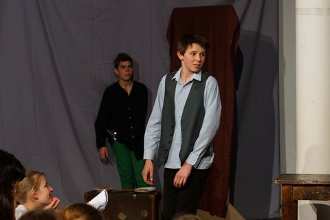 Képek a nyolcadik osztály Szigligeti Ede: Liliomfi című vígjátékának az előadásáról.