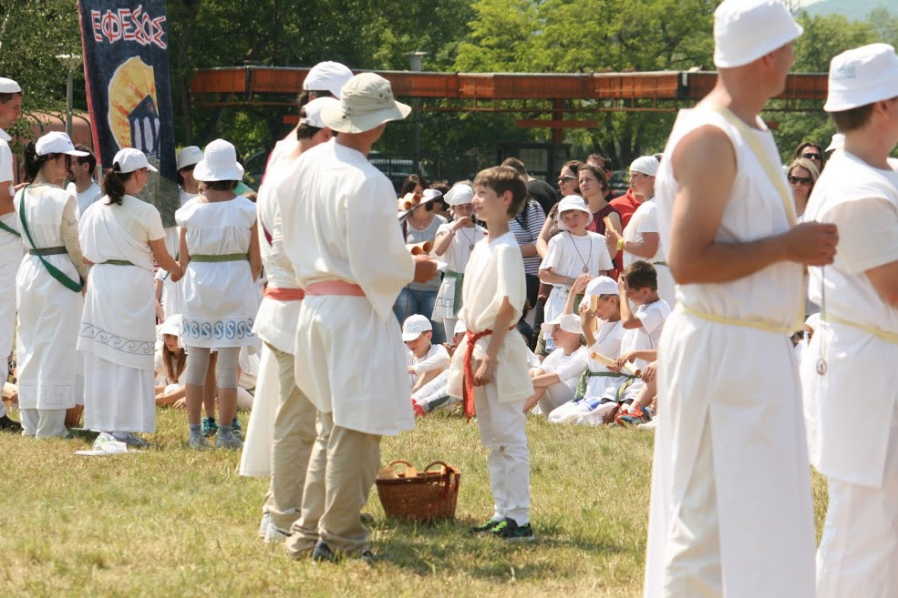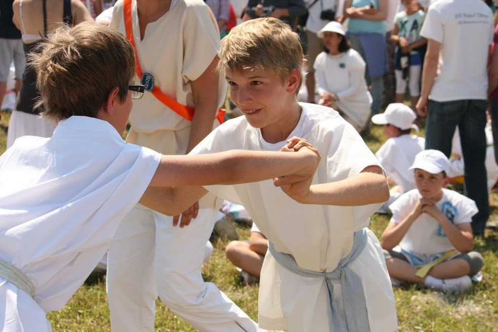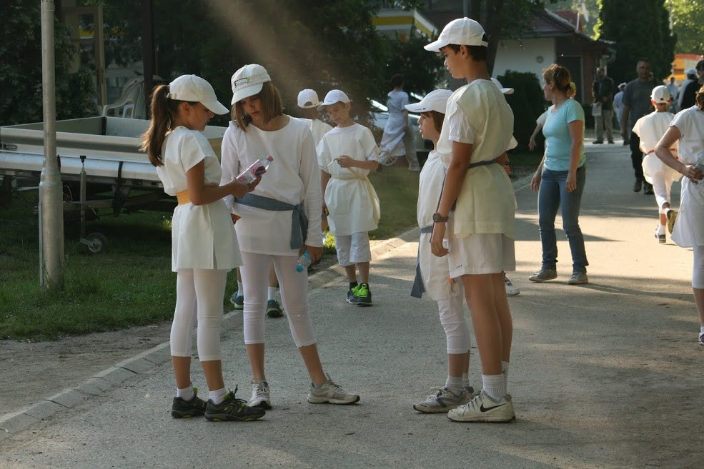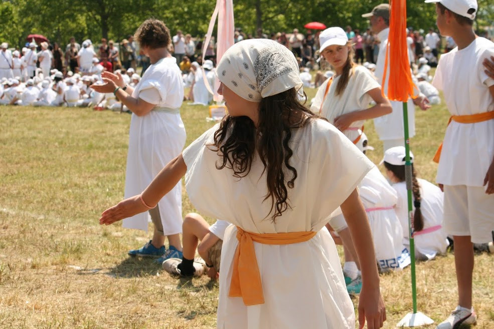 Mikor megérkeztünk Alsóörsre, félnapi készülődés és egy éjszaka után beosztották a városállamokat. Ezután következett a két edzésnap, amelyen még tovább tökéletesíthettük eddigi tudásunkat. Szombaton eljött az olimpia napja. Talpig fehérben és tunikában, izgatottan, hevesen dobogó szívvel sétáltam az osztálytársaimmal a megnyitó ceremóniára. Nagyon szép volt. Ez volt az első alkalom, ahol három nap után először találkoztunk a szüleinkkel. Aztán kezdődött csak a java. Letettünk egy esküt Istennek. Azután az összetekert emléklappal a kezünkben futottuk le a maraton két kilométerét a mezőn át. Majd a többi versenyszám próbáin is küzdöttünk (diszkoszvetés, gerelyhajítás, stafétafutás, stadionfutás, távolugrás, magasugrás, birkózás). Nagyon szép látványt nyújtott a 400 ötödikes, mindenki tunikában, festett övvel, miáltalunk festett zászlóval le és felvonulva a versenyszámok küzdőhelyéről. Az olimpiának a végét lakomával ünnepeltük meg. Előtte még a városállam vezetők dicsérő szavaival kísérve kiosztották az érmeket és az emléklapokat. Soha nem fogom elfelejteni az annyira várva-várt olimpiát.