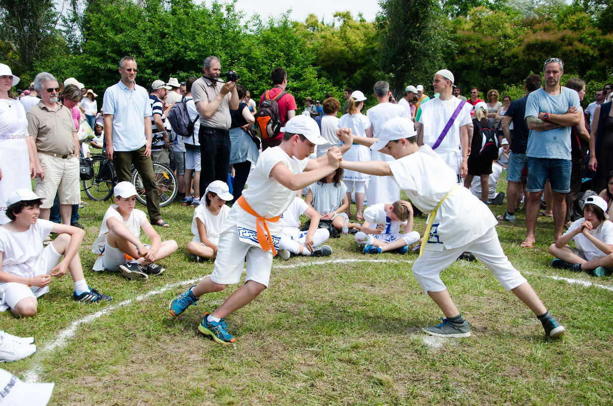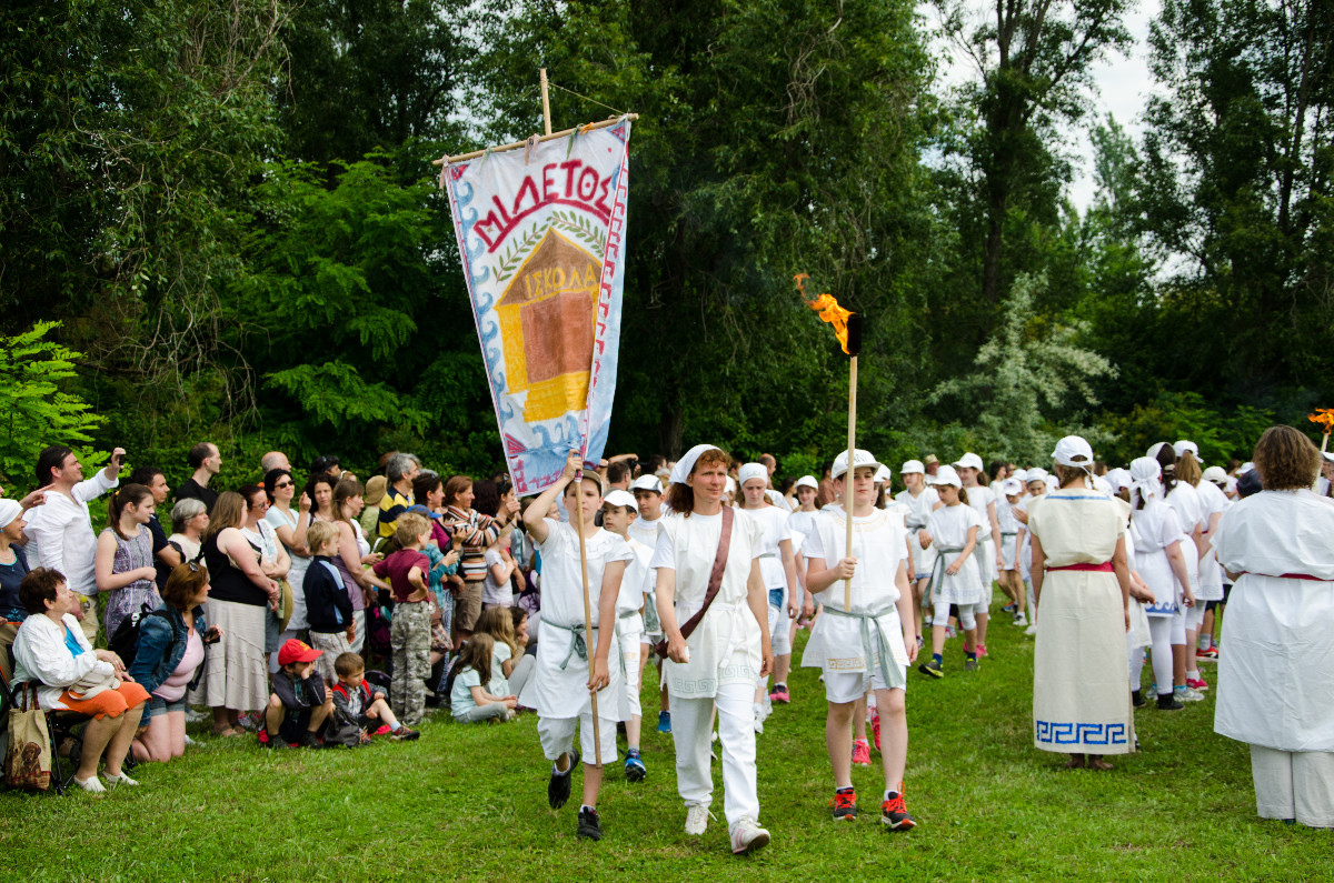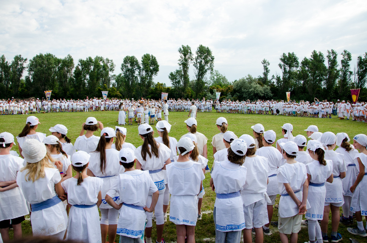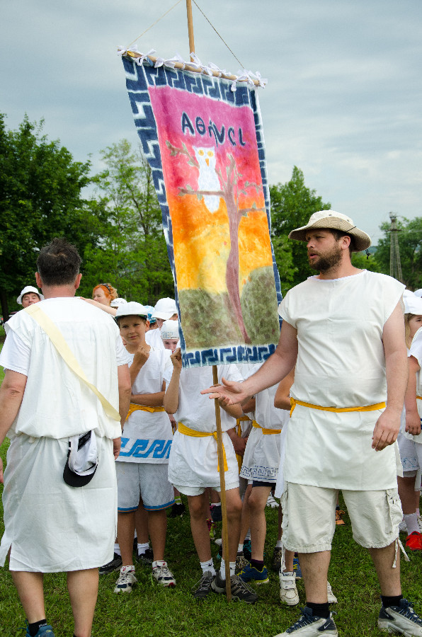 Az Olimpia napja nyitással kezdődött, ahol énekeltünk. Ez után jött a maratonfutás, ahol először a lányok, aztán a fiúk indultak, mégis egy fiú ért be először. Mikor beérkeztünk, őrjöngő tömeg várt minket. Utána jött a sprint, ahol tizennégy városállam futott soronként, úgy, hogy egy sor fiú, egy sor lány. Aztán jött a távolugrás, aztán a magasugrás, amiben mindenki jó volt. Ezután jött a tízórai, ami túrós bukta volt. Aztán jött a birkózás, ahol szétosztottak minket számok szerint. Végül a diszkosz, a gerely és a staféta.