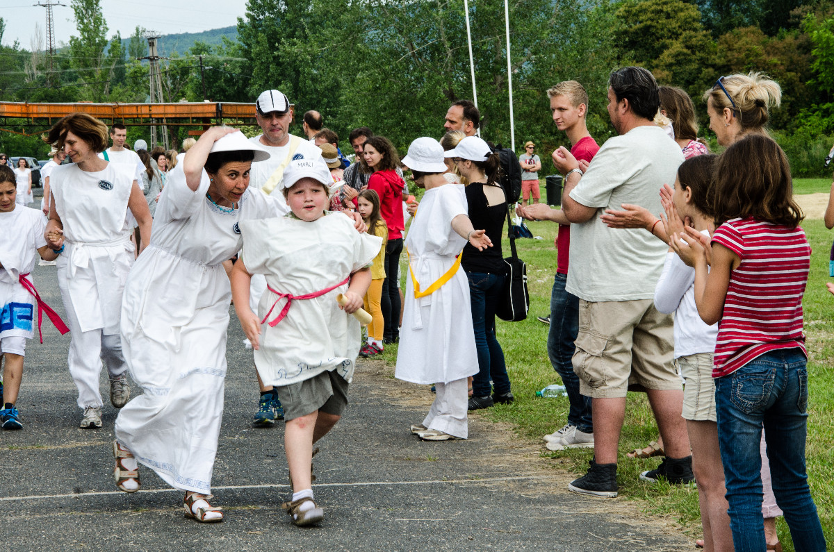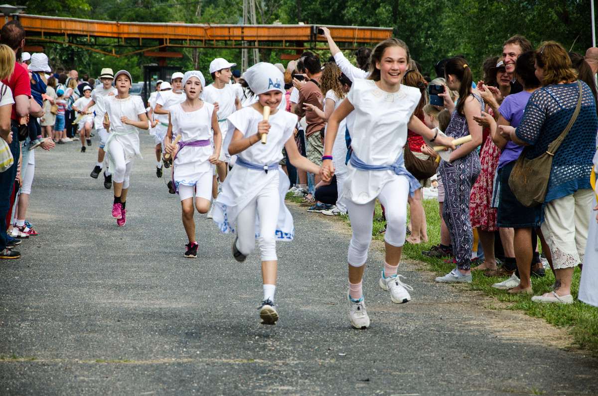 Nagyon élveztem az Olimpiát. Főleg Emivel voltam, mert egy városállamban voltunk, de Szellővel, Sárával, Julcsival és Grétivel is, mert egy házban laktunk. A reggeli borzasztó volt: szalámis vaj kenyérrel, amit ők szendvicsnek neveztek. Csak első nap kértük ki, de akkor is kidobtuk. Reggeli után a szülők házánál találkoztunk. Zsolt elmondta, mi lesz aznap, és elindultunk a városállamunkba. Az edzés úgy volt, hogy kb. 20-30 perces megállók voltak: magasugrás, távolugrás, versírás, éneklés, maratonfutás (2 km-es), stadionfutás, váltófutás, diszkosz, gerely és birkó. Ez ment, azt hiszem, fél egyig, aztán elmentünk ebédelni, majd volt egy kis időnk a házban, aztán közös játék, majd még egy kis idő, aztán vacsora.